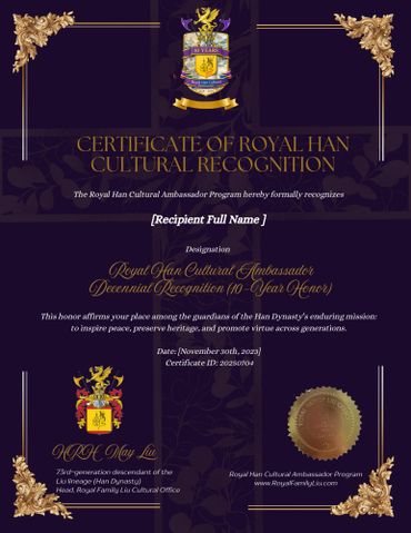 Lifetime Royal Han Cultural Ambassador